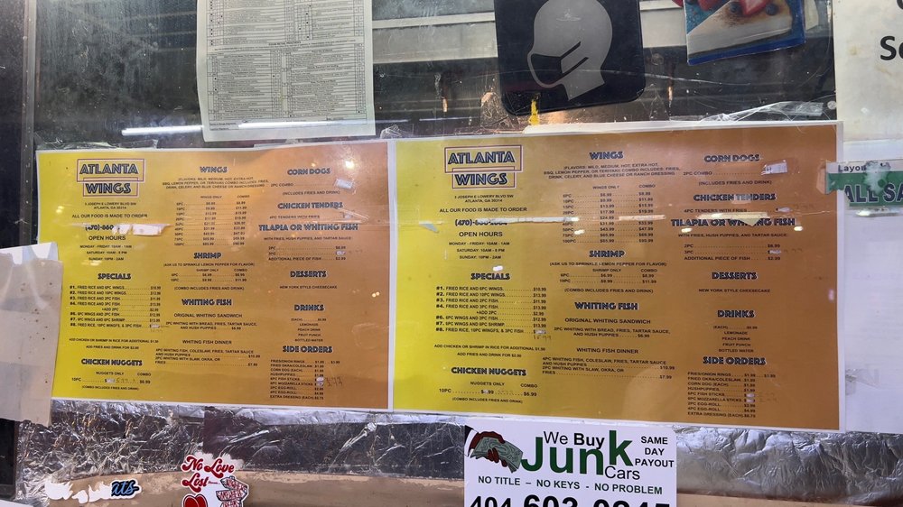 Introducing Atlanta Wings, a flavorful destination for chicken wing aficionados nestled in the vibrant West End of Atlanta. Renowned for its succulent wings, Atlanta Wings presents a diverse menu that caters to every craving. The restaurant offers a range of options, from classic wings (6 pieces for $4.99) to generous combos, ensuring ample choices for groups and families.